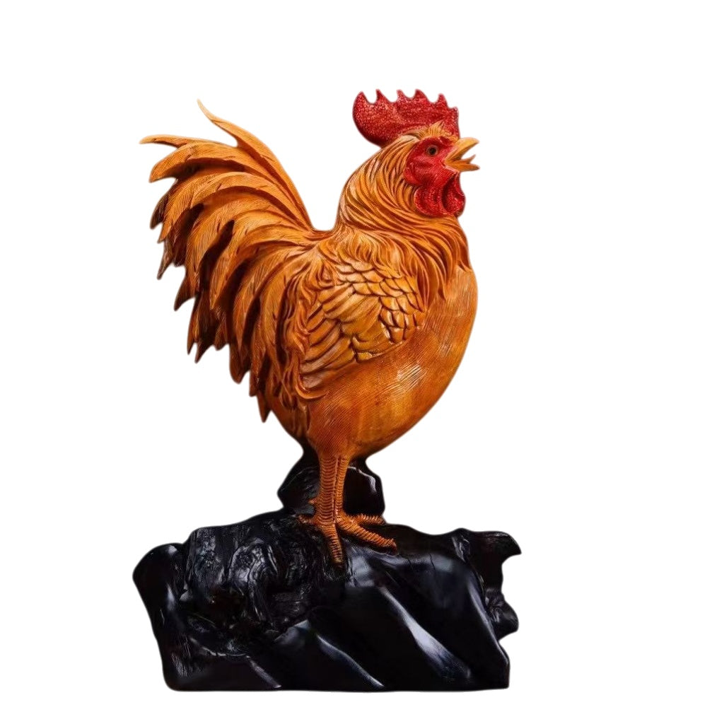 有限会社瑞陽商事が厳選した天然木を使用し、職人が一つずつ丁寧に仕上げた雄鶏の木彫り置物です。力強い立ち姿は、家運隆盛のシンボルとして最適です。